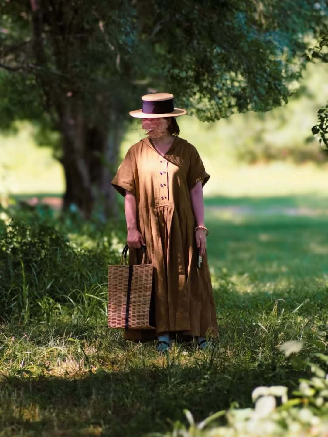 素材にはさっくり心地よいリネン生地を使用しております。落ち着いた色で、どんなシーンにも合わせやすい一着です。