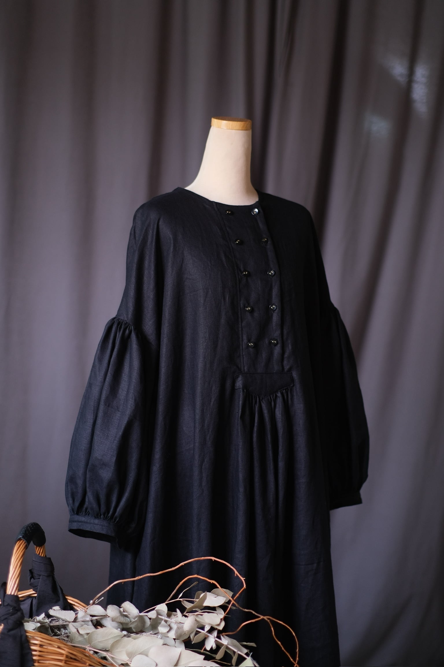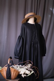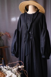 素材にはさっくり心地よいリネン生地を使用しております。落ち着いた色で、どんなシーンにも合わせやすい一着です。